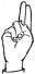 На ћирилици написано ФИЛОТИЈЕ ОБРАДОВИЋ састоји се из 17 слова [?]. Исписано ћириличном једноручном азбуком за глувонеме: